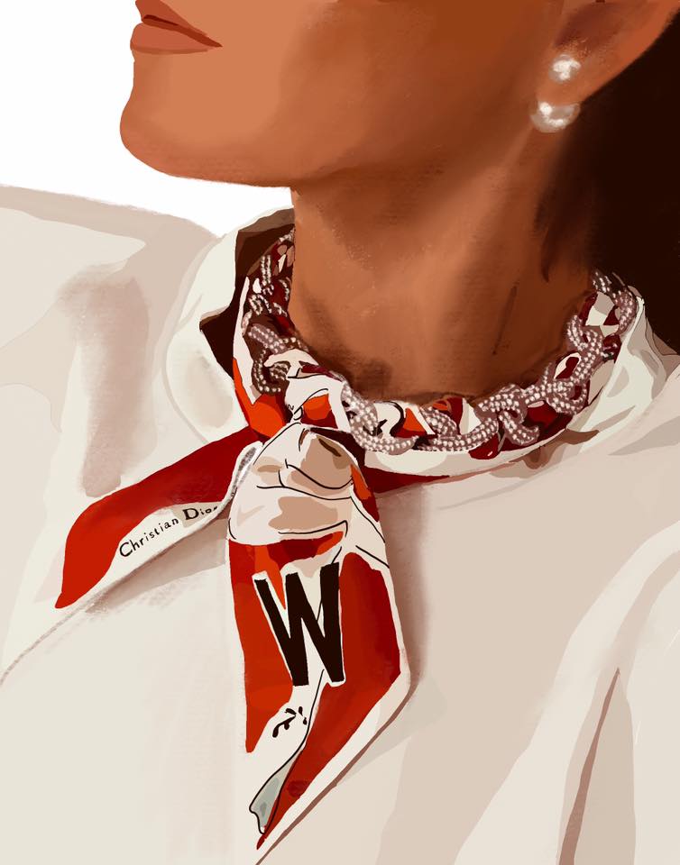 הראשון הוא איור אהוב שלי בהשראת מודעת פרסומת ישנה של דיור, שימו לב לצעיף ❤