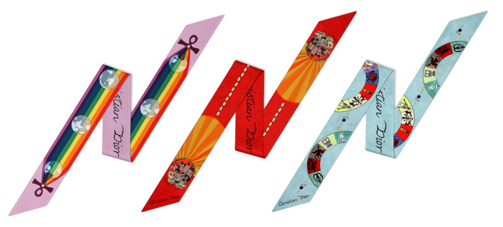 צעיפי המיצה מגיעים בעיצובים מגוונים המתחדשים בכל קולקצייה, ומצידם השני תמצאו לרוב את הלוגו של כריטסיאן דיור, שידע להתנופף באלגנטיות מרומזת ברגע המתאים.
